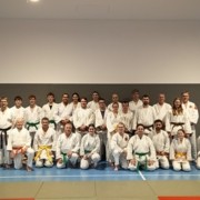 Er startete mit einem dem Karate angepassten Aufwärmtraining, unter anderem mit Übungen an der Agility Ladder. Danach folgten die Basics des Karate: Unter anderem Schläge, Tritte und Blöcke. Nach einer kurzen Pause ging es passend zum Thema des Lehrgangs: „Karate-Grundtechniken und Anwendungen“ weiter mit Kombinationen aus den zuvor gelernten Fähigkeiten und ein paar Blockdrills. Anschließend zeigte Manuel mehrere Kumite Ura Techniken aus dem Goju-Ryu Karate. Für die Jiu-Jitsukas sorgte dies für Verwirrung, weil bei diesen Partnerformen der Angreifer (!) grundsätzlich gewinnt. Am Ende des knapp dreistündigen Lehrgangs waren sich alle Teilnehmer einig, dass es ein spannender Einblick in eine andere Kampfsportart war, von der man einiges lernen kann und dass man dies auf jeden Fall noch einmal wiederholen sollte.